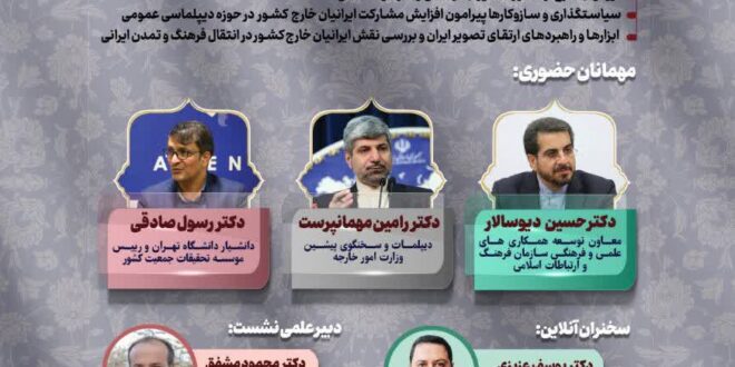 Read More »این نشست تخصصی با عنوان «دیپلماسی عمومی، تصویر ایران و جامعه مهاجران ایرانی»، روز سهشنبه ۹ دیماه ساعت ۱۴ در دانشگاه علامه طباطبایی، دانشکده علوم اجتماعی واقع در خیابان پاسداران خیابان گلنبی، سالن ارشاد برگزار خواهد شد.