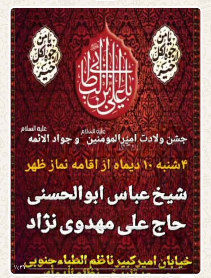 دوشنبه صبح حسینیه بنی فاطمه ح مجاهدین
