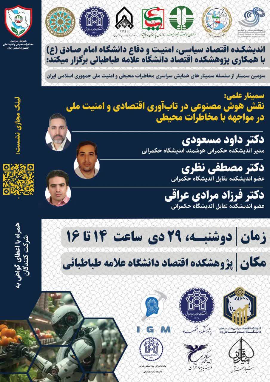 به آگاهی می رساند همایش مخاطرات امنیتی و پایداری اقتصادی با رویکرد هوش مصنوعی روز دوشنبه ۲۹ دی ماه ساعت ۱۴ با حضور دو تن از کارشناسان اندیشکده تقابل در دانشگاه اقتصاد علامه طباطبایی برگزار می گردد حضور جنابعالی مزید امتنان است